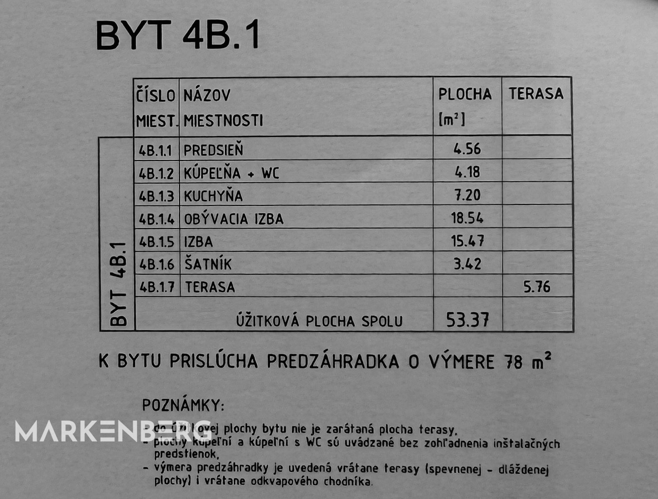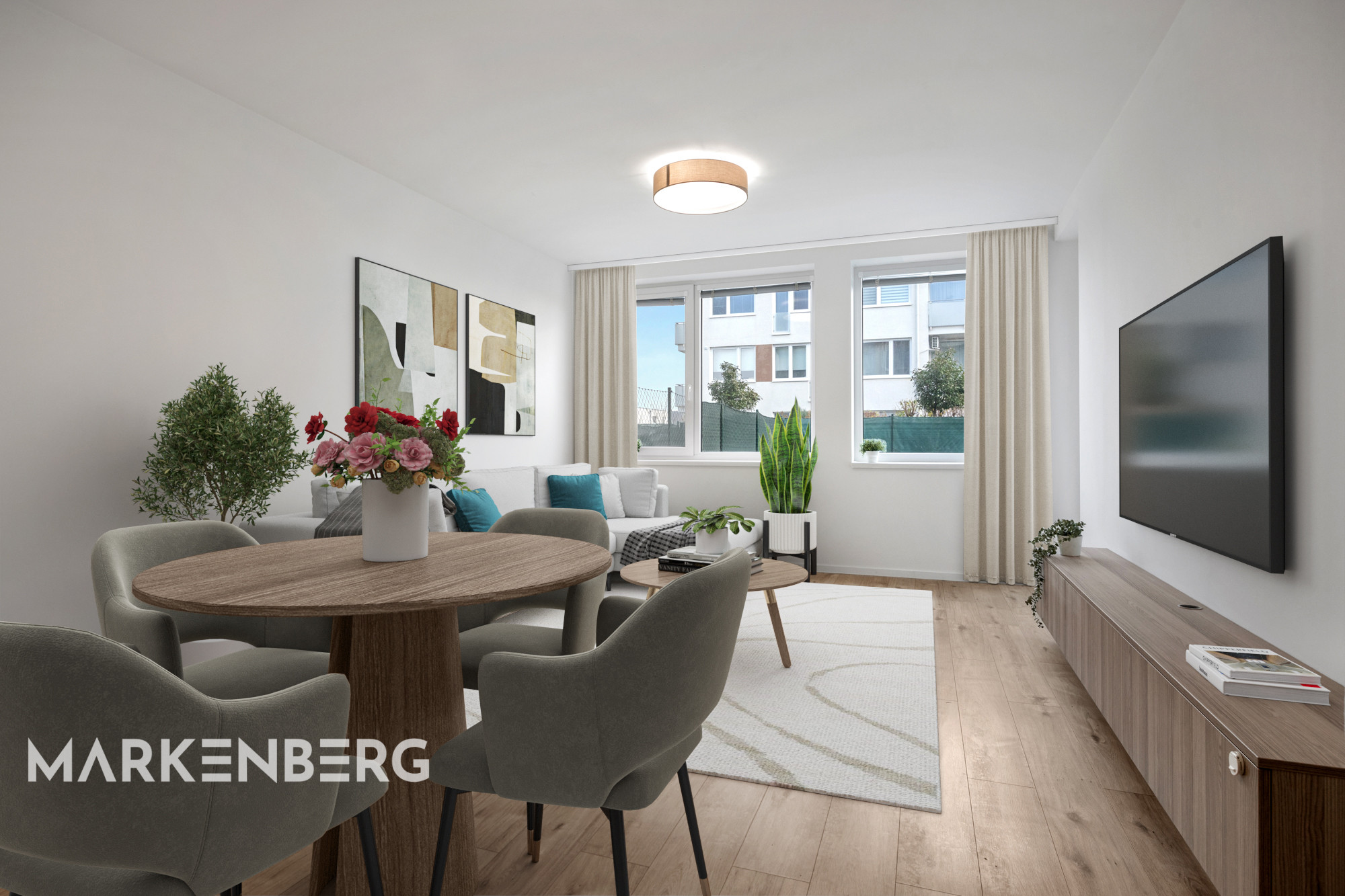 MARKENBERG ponúkame na prenájom bezbariérový 2-izbový byt s veľkou predzáhradkou o výmere 78 m². Byt je nezariadený, preto si ho môžete zariadiť podľa vlastných predstáv a použiť svoj nábytok. K dispozícii je kuchynská linka so spotrebičmi, TV skrinka, rolldor v spálni a samostatný šatník.